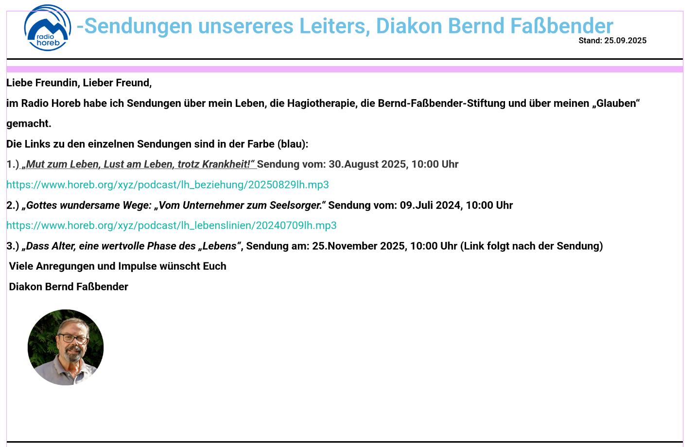Die folgende Sendung fand im Radio Horeb am Dienstag, den 9. Juli 2024 in der Serie Lebenslinien statt.