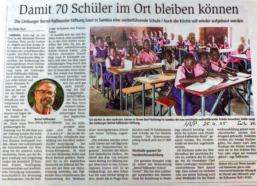 Eine wunderbare Kooperation – die Bernd-Faßbender-Stiftung und Sambia e. V.