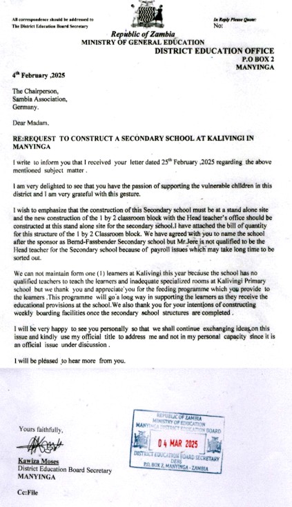 Genehmigung des "Bernd-Faßbender-School-Center", Kalivingi