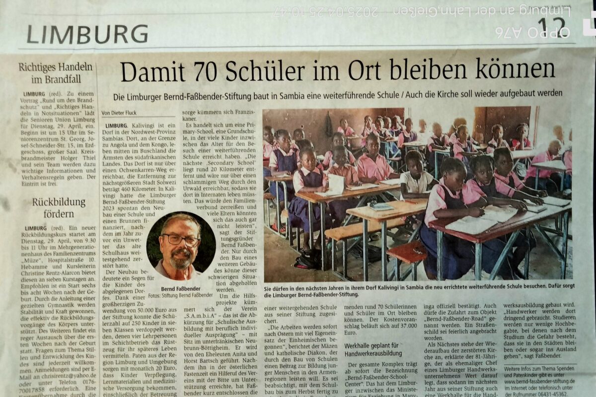 Die Region zählt zu den ärmsten Sambias. Derzeit gibt es nur zwei Räume, in welchen sieben Klassen schichtweise betreut werden. Die BFS Bernd-Faßbender-Stiftung spendete 50.000 EUR, womit der Neubau der Schule finanziert wird.